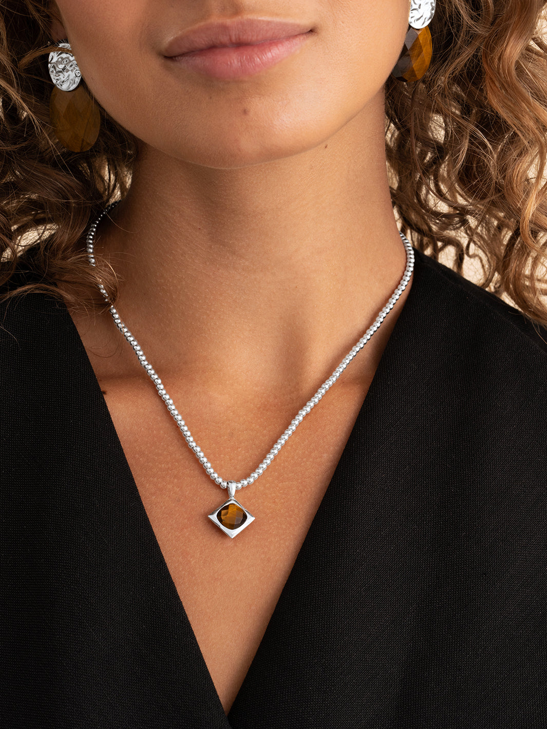 Tiger Eye Cushion Cut Beaded Ketting Set Zilver